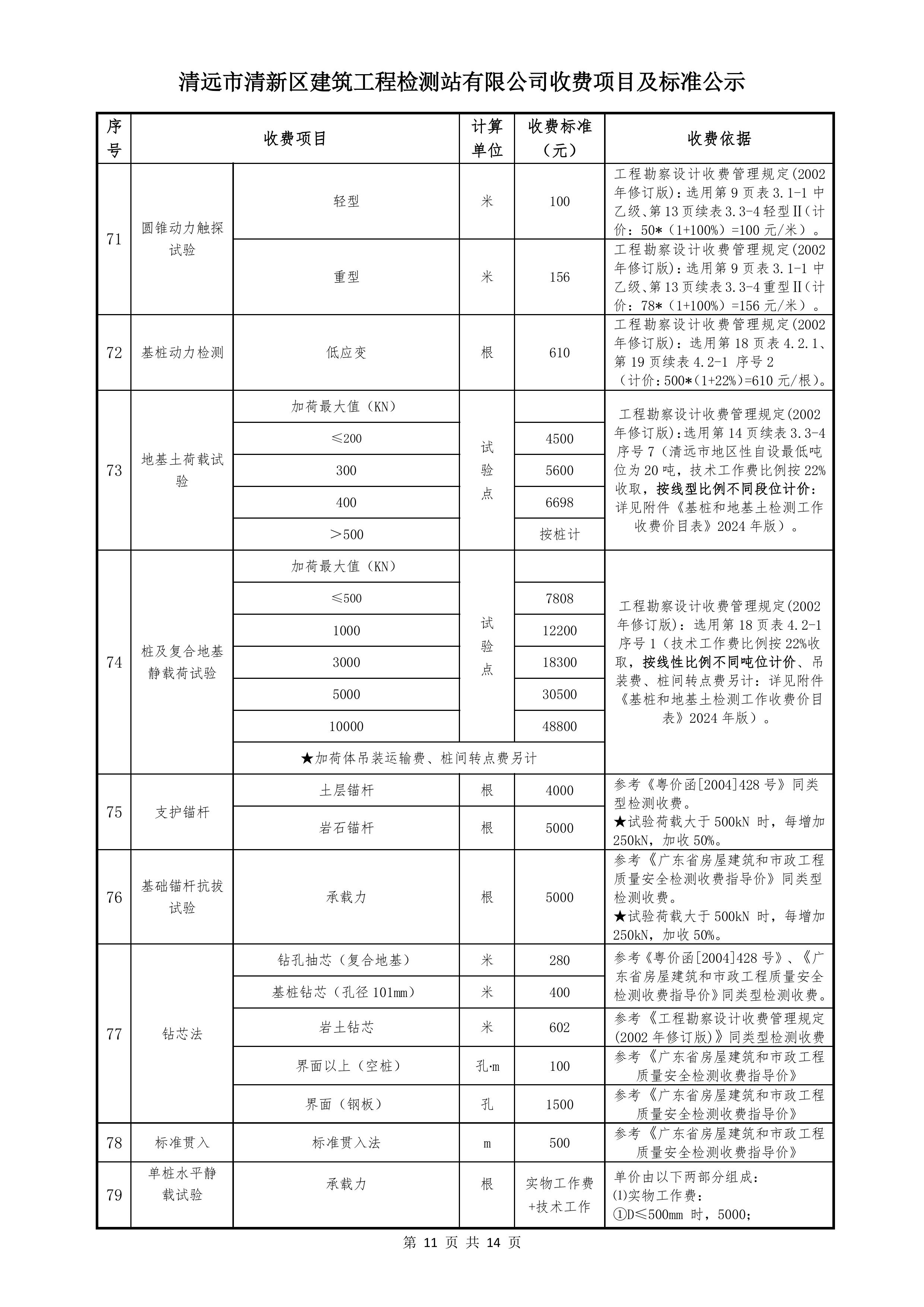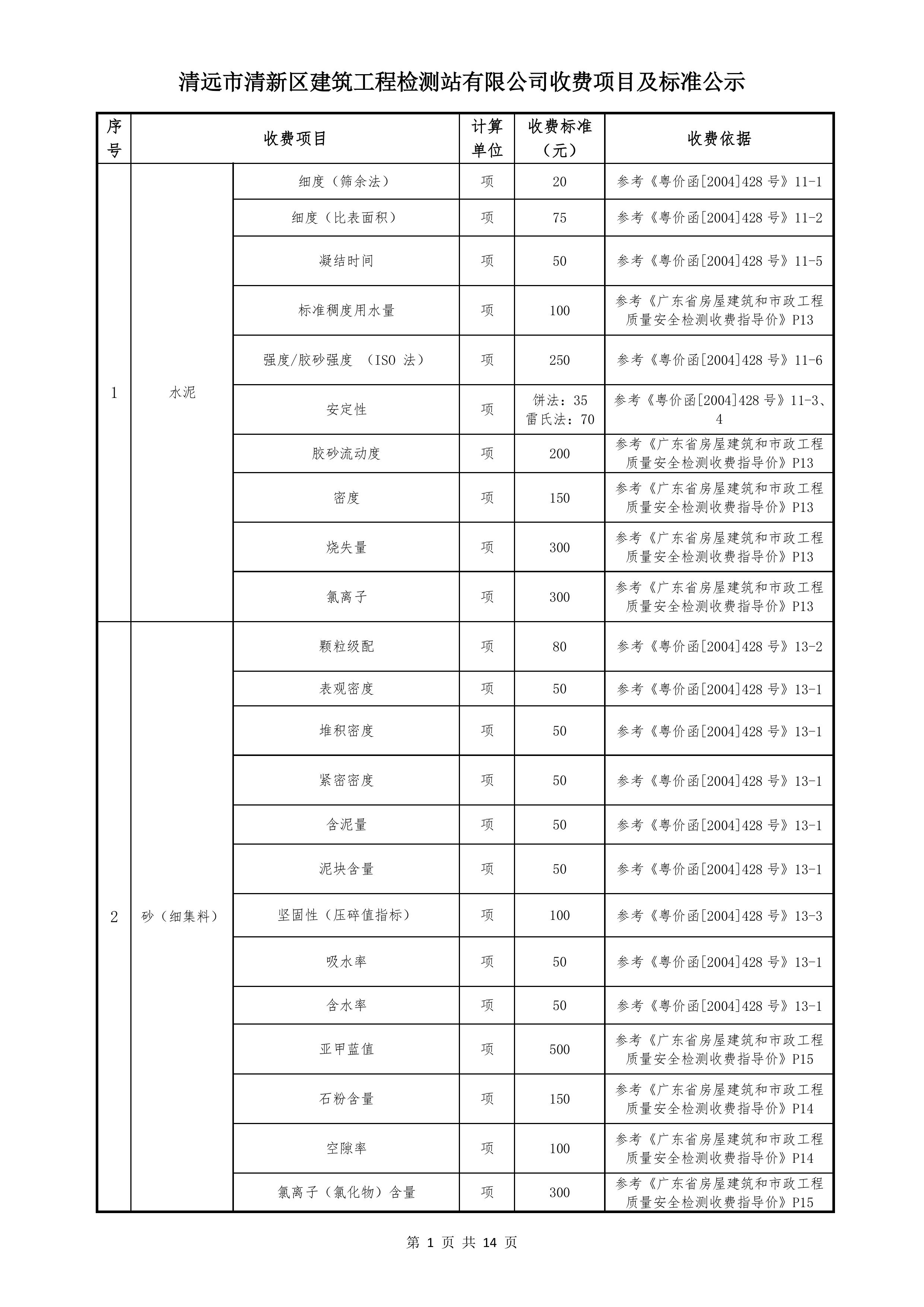 清遠(yuǎn)市清新區(qū)建筑工程檢測(cè)站有限公司收費(fèi)標(biāo)準(zhǔn)2025122