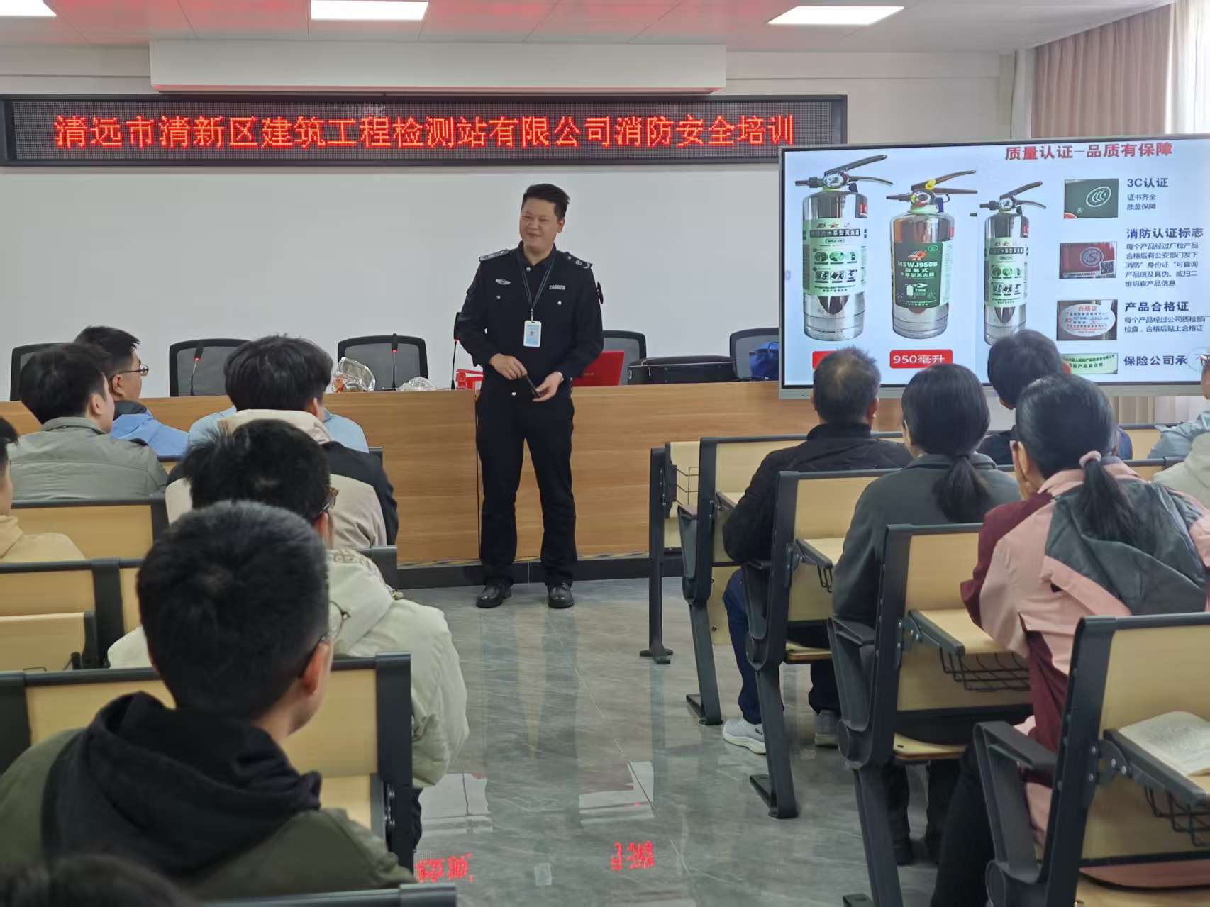 活動首先進行消防知識專題講座。公司特邀專業(yè)教官圍繞辦公場所、試驗室及建筑工地等實際工作環(huán)境,系統(tǒng)講解了火災(zāi)隱患排查、初期火災(zāi)撲救、疏散逃生技巧及相關(guān)消防法律法規(guī)。培訓重點針對干粉、二氧化碳、水基等常用滅火器材的適用場景及規(guī)范操作方法,通過“提、拔、握、壓”四步操作口訣進行現(xiàn)場演示與分解教學。講座內(nèi)容緊密貼合工作實際,突出實用性與指導性,進一步強化了員工“預(yù)防為主、生命至上”的安全理念。